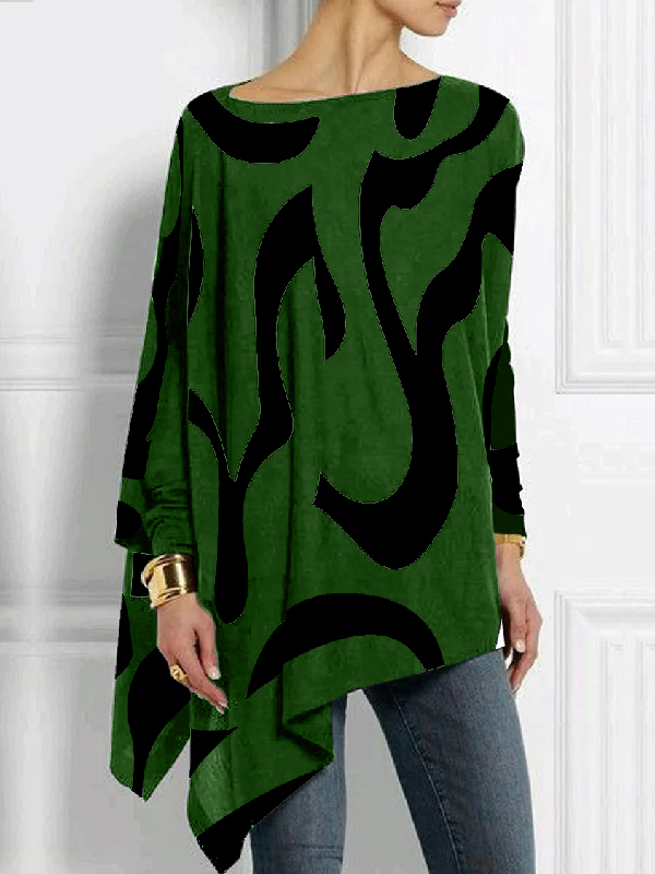 Casual Loose Three-Quarter Sleeves Printed Asymmetric T-Shirts Tops