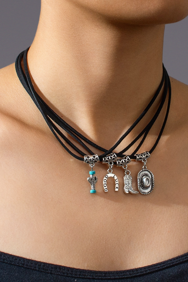 Women Western Shoes Hat Necklace