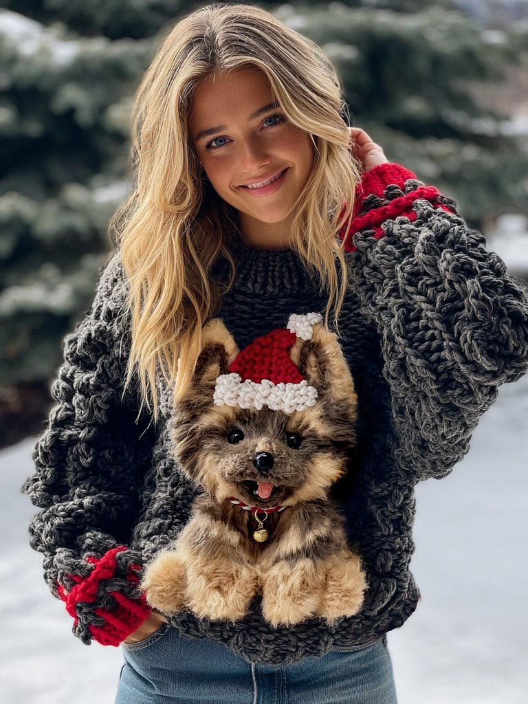Christmas Cute German Shepherd Puppy Chunky Knit Cozy Sweater
