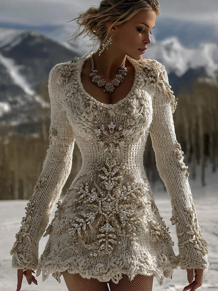 Christmas Snowflake Diamond Knitted Sweater Dress