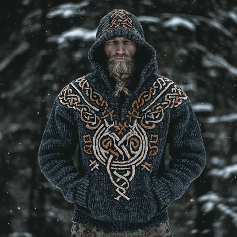 Men's Casual Viking Embroidered Print Hoodie Sweater