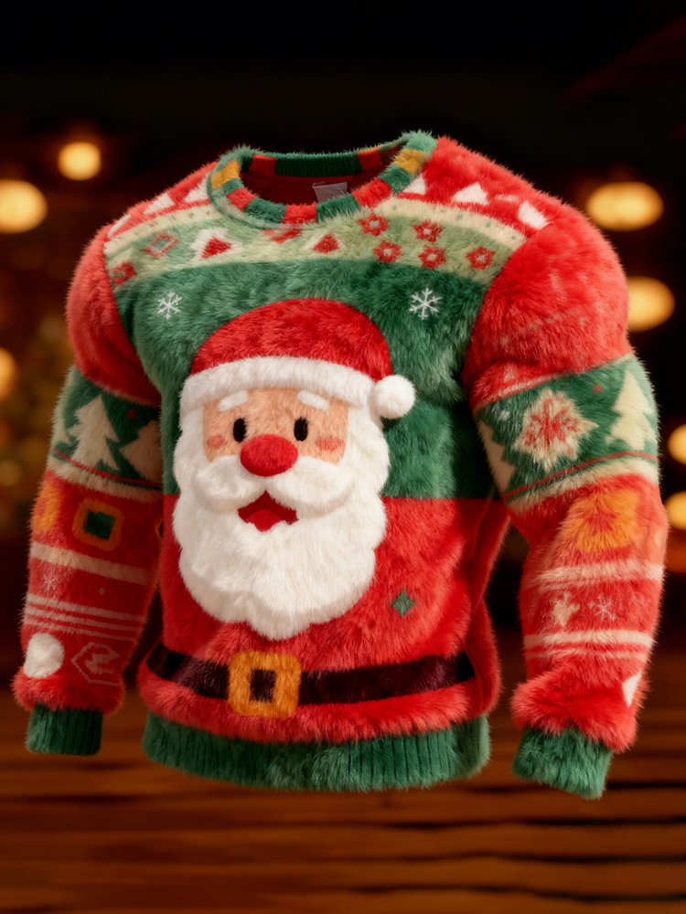 Men's Retro Viking Christmas Santa Claus Flannel Sweatshirt