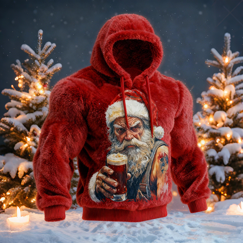 Men's Viking Santa Claus Wine Glass Comfortable Plush Hoodie