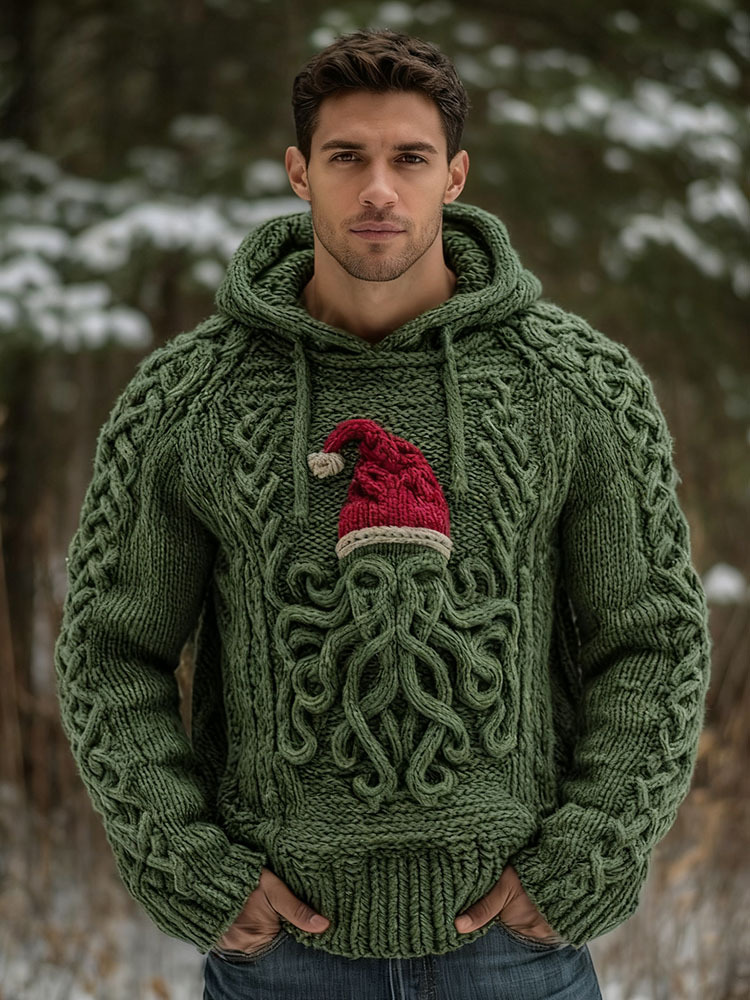 Men's Vintage Octopus Christmas Hat Celtic Art Jacquard Art Cozy Hoodie
