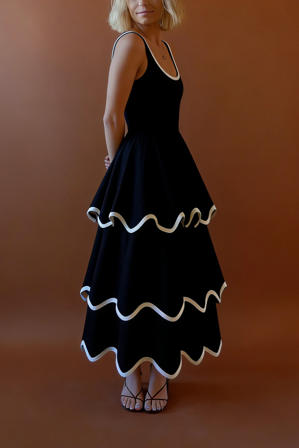 SKU: DRSY26010902 Neckline: U-neck Sleeve Type: Sleeveless Style: Multi-layered A-line
