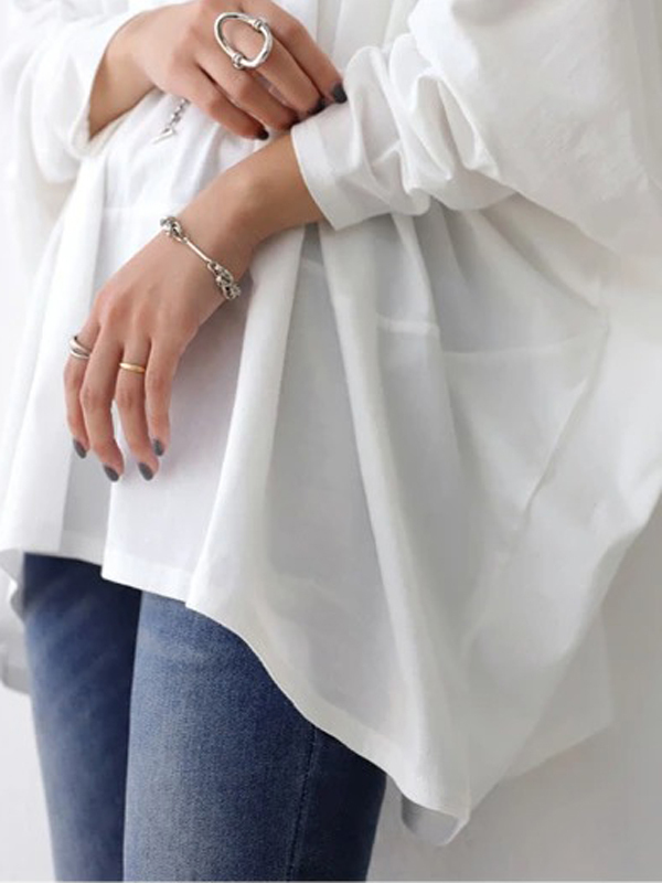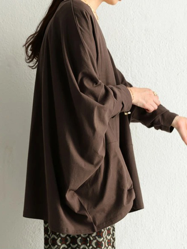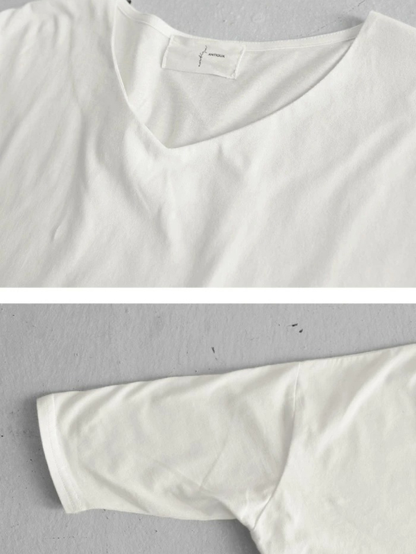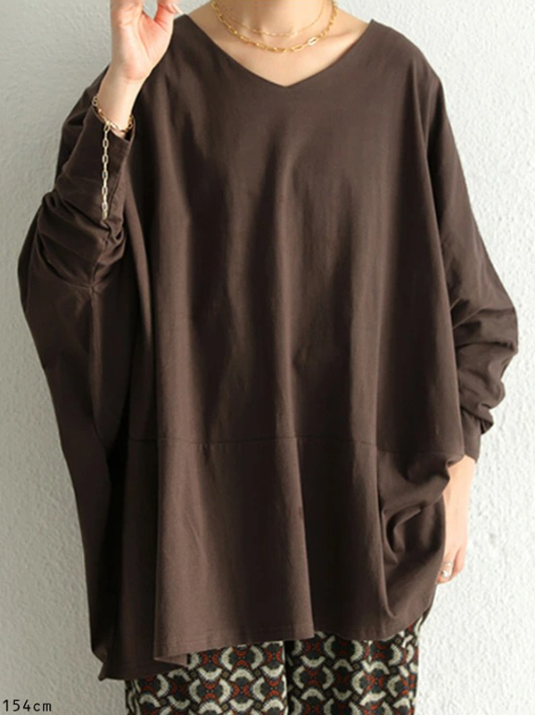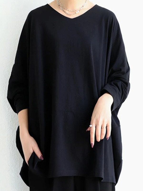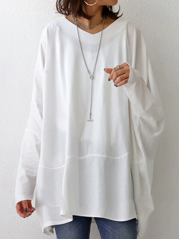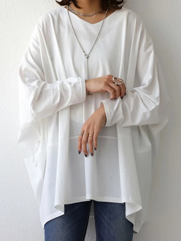 Simple Oversize Solid Color V-Neck Batwing Sleeve T-Shirts
