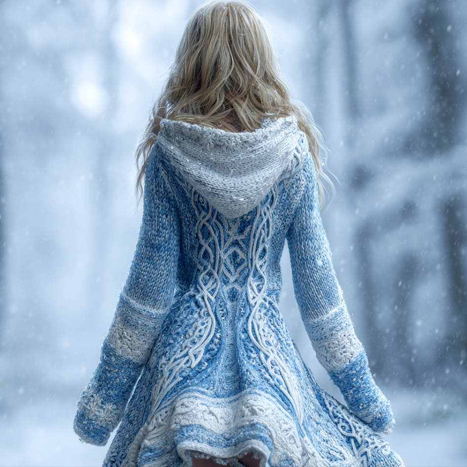 Snow And Ice Christmas Retro Style Women's Knitted Hooded Sweater Dress