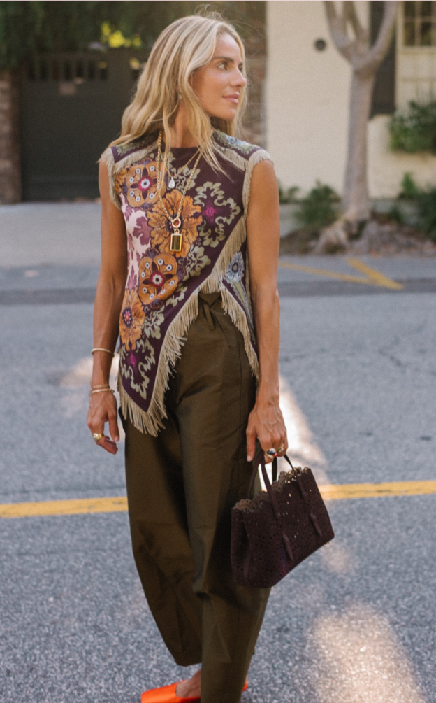 Stunning Floral Print Asymmetric Tassel Trim Scarf Top