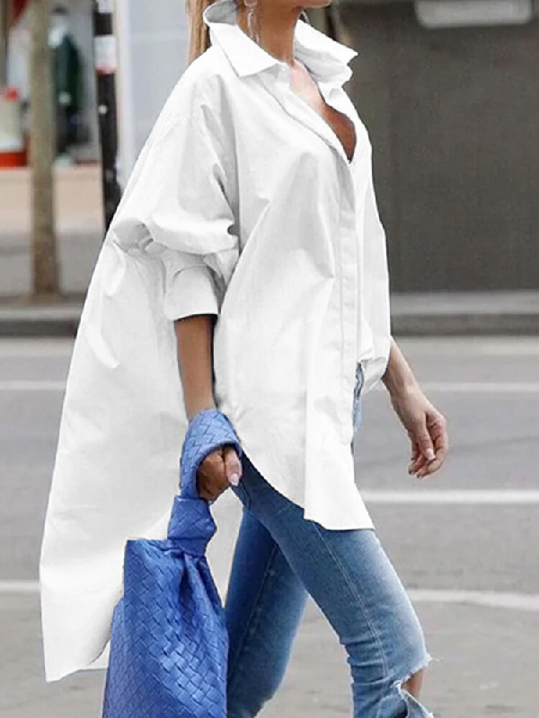 Urban Long Sleeves High-Low Solid Color Lapel Blouse Top