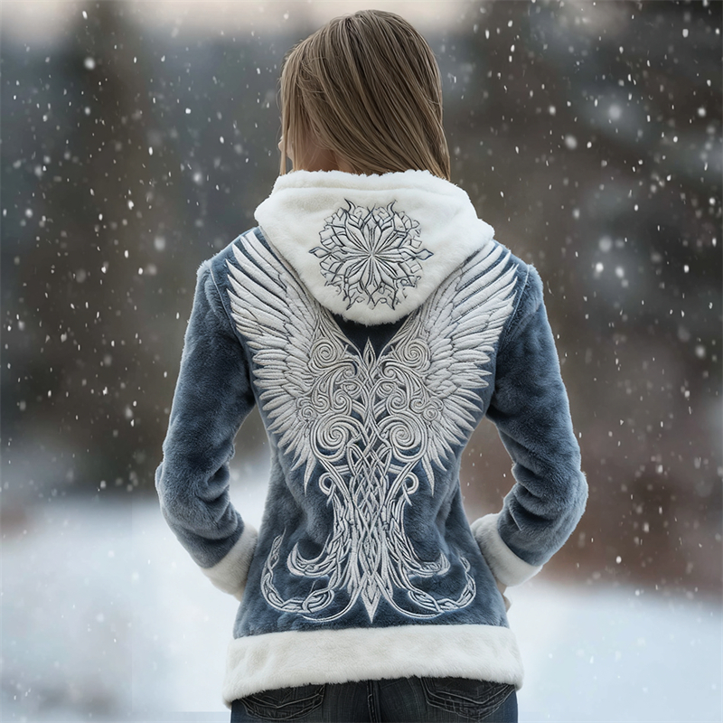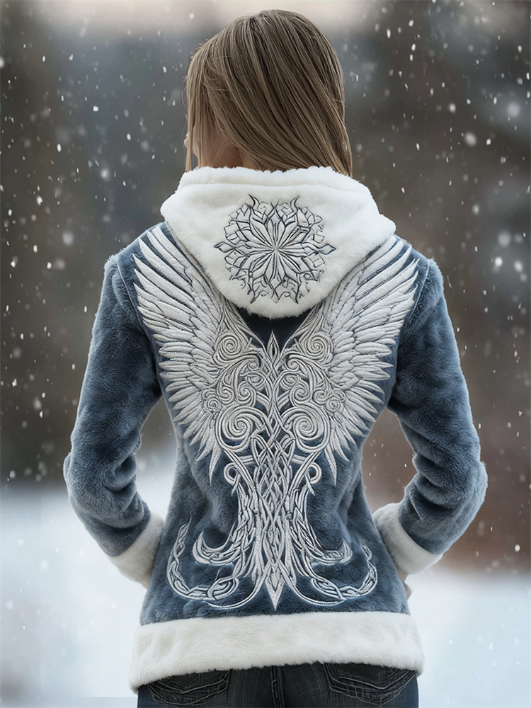 Viking Wings Snowflake Celtic Embroidered Cozy Plush Hoodie