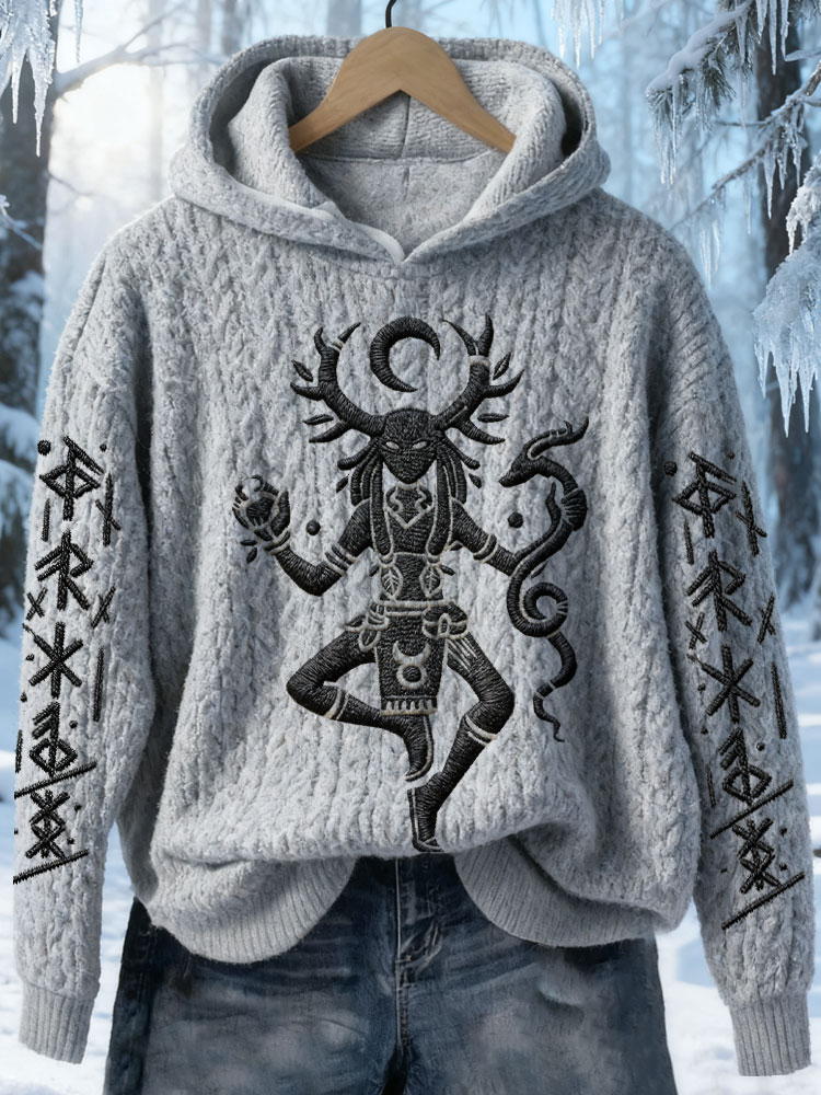 Vintage Casual Viking Embroidered Print Hoodie Sweater