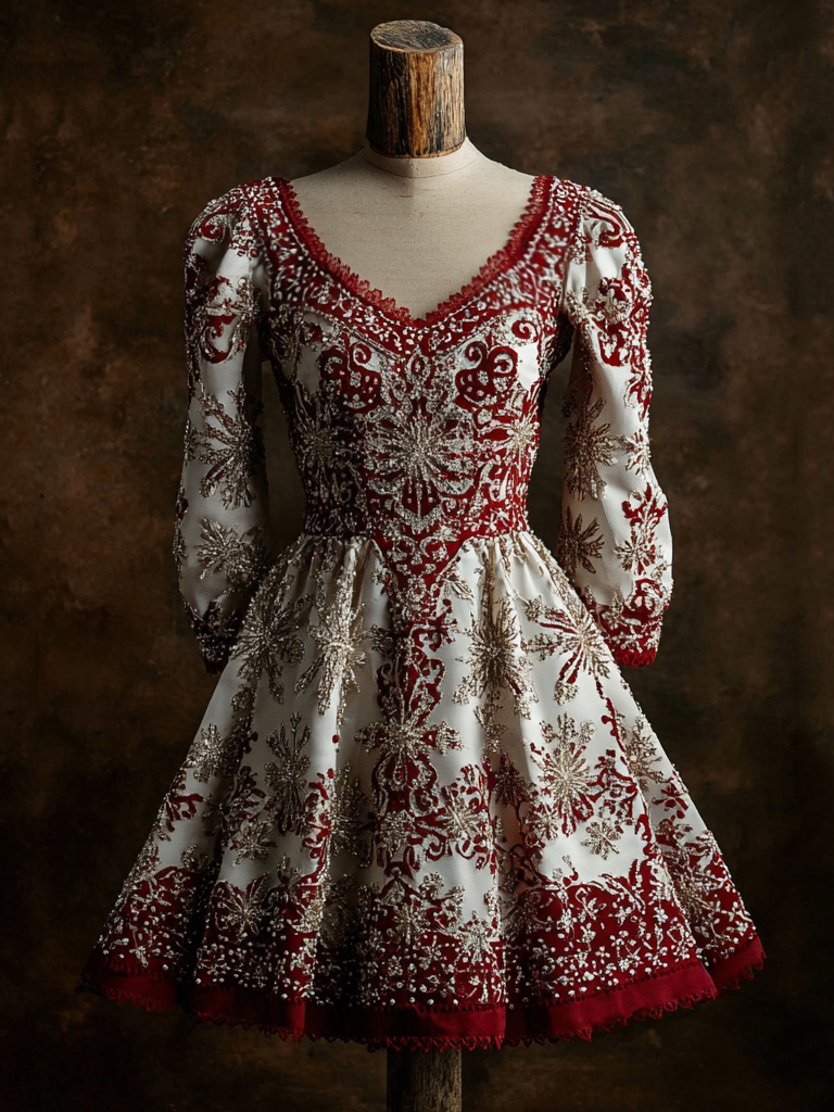 Women's Christmas Snowflake Embroidered Princess Midi Dress