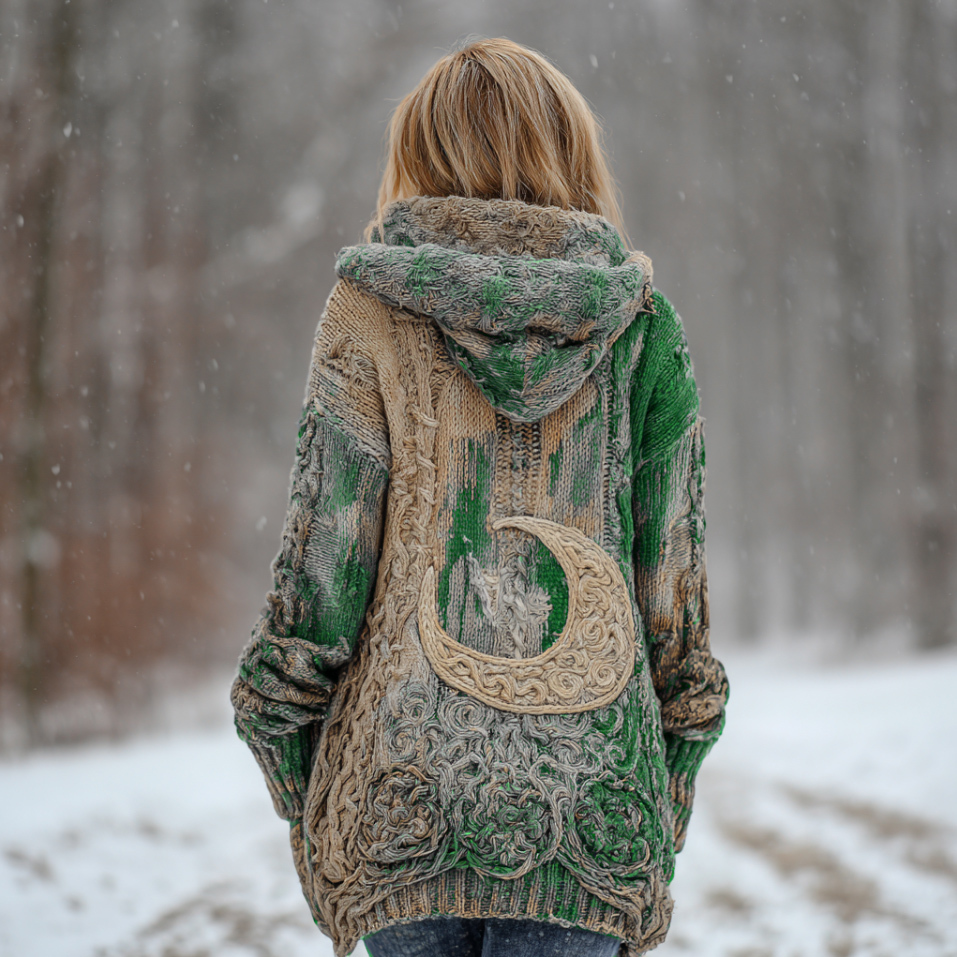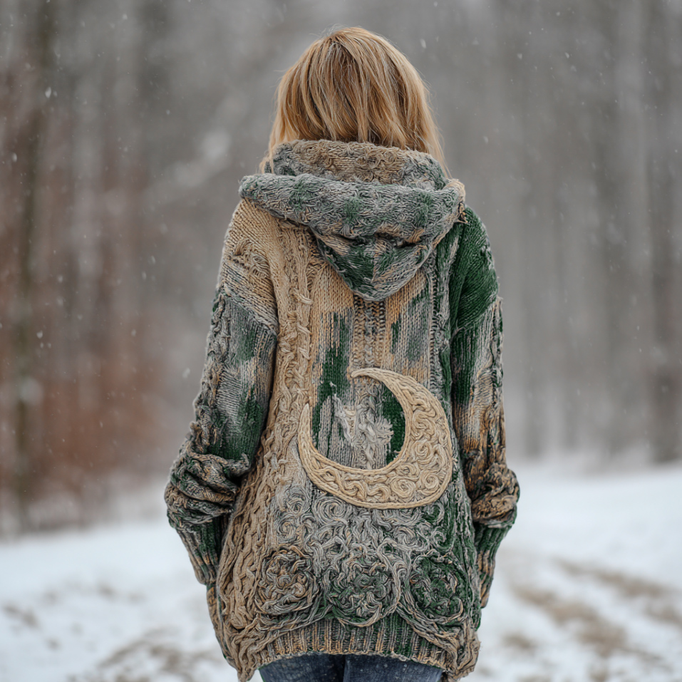 Women's Star And Moon Element Winter Warmth Knit Hooded Cardigan Sweater Jacket